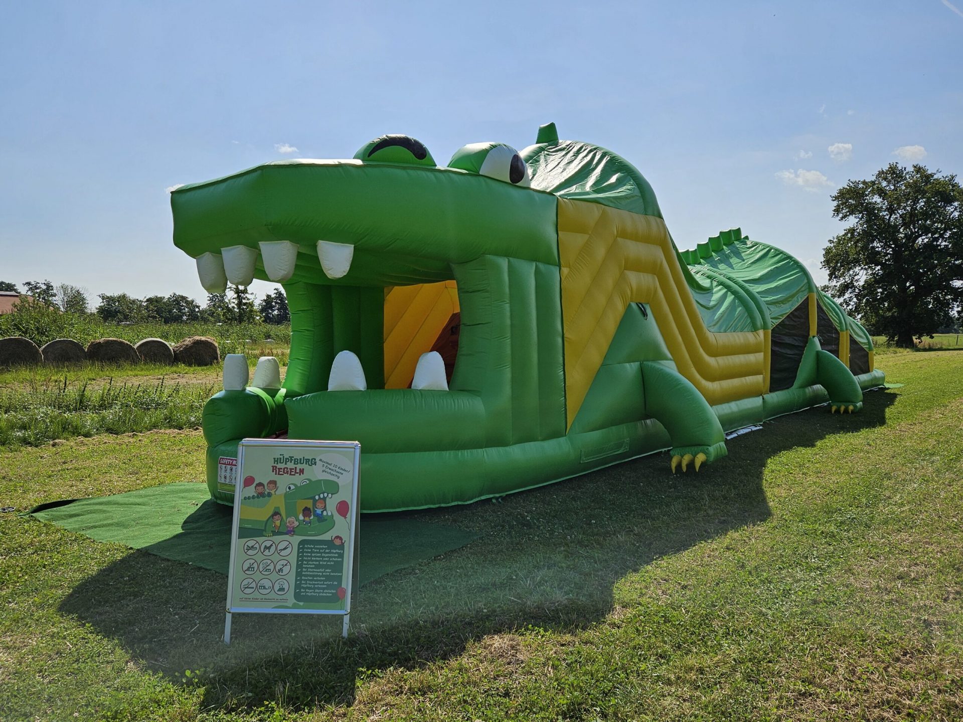 Tauchen Sie ein in die aufregende Welt der Hüpfburg XXL „Kroko“ und erleben Sie ein Abenteuer, das Kinderherzen höherschlagen lässt. Diese riesige Hüpfburg in Form eines Krokodils ist nicht nur ein beeindruckender Blickfang, sondern bietet auch jede Menge Spaß und Unterhaltung für Ihre kleinen Gäste.