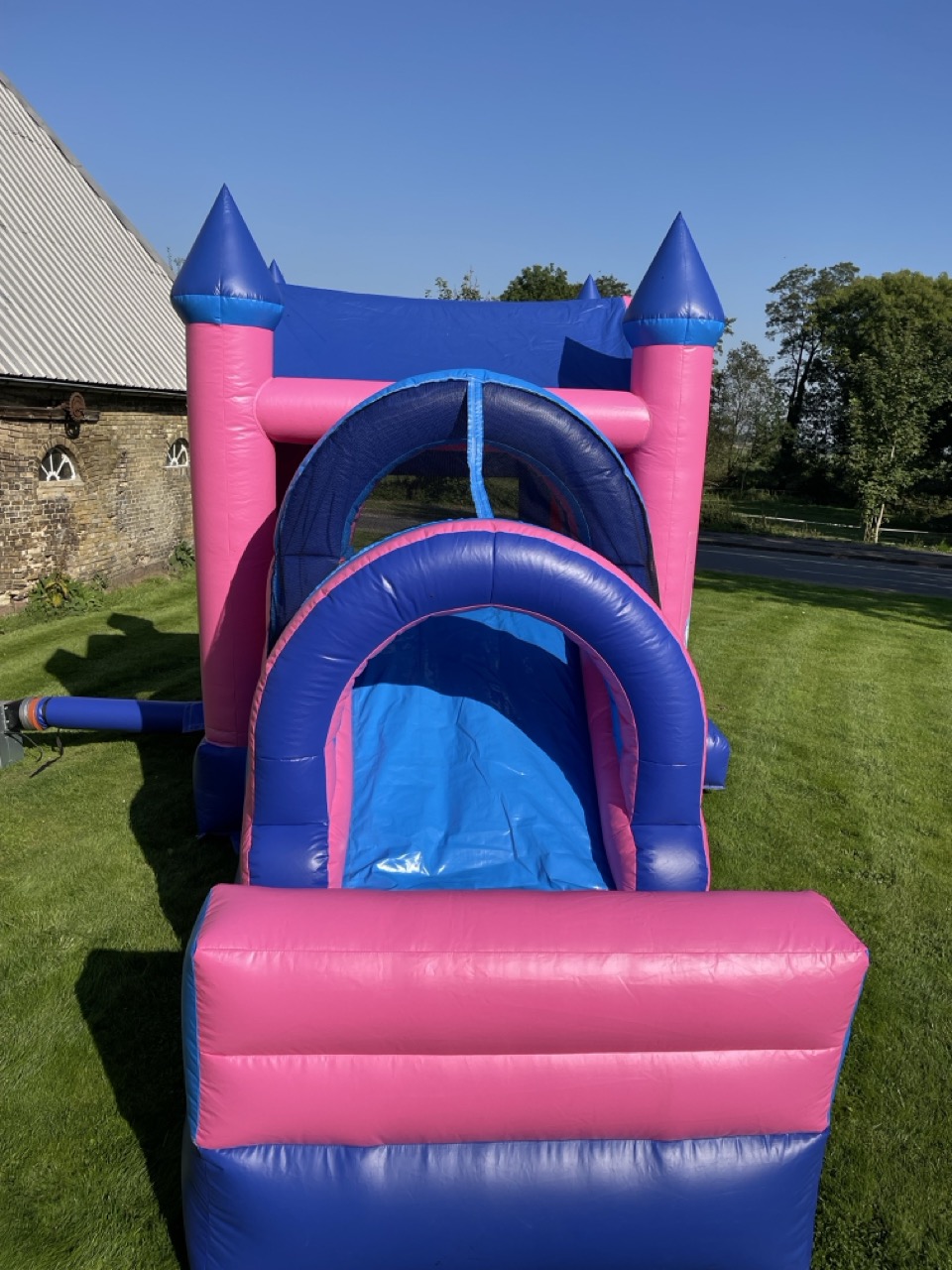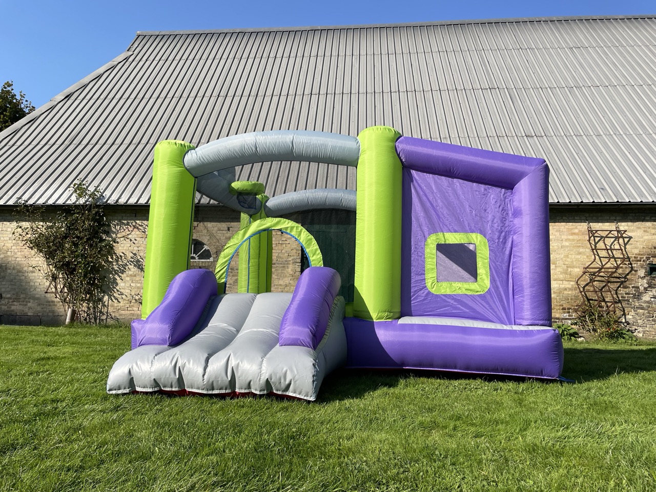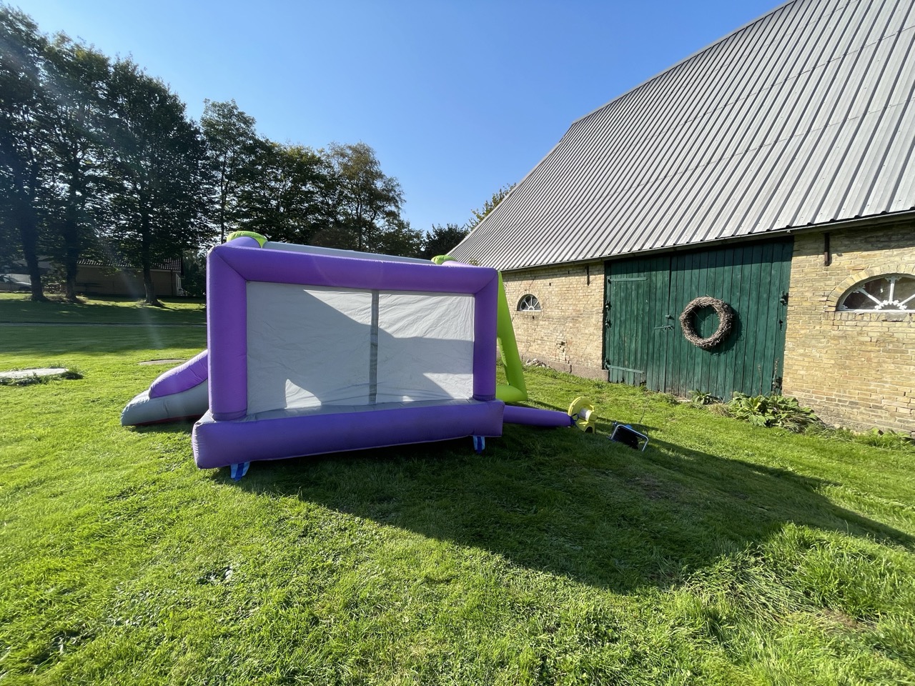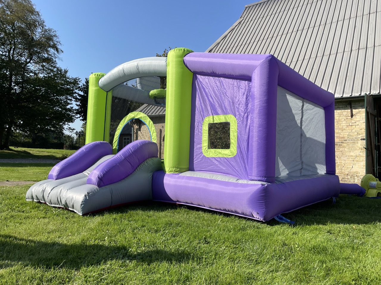 Die Hüpfburg ist mit großer Hüpffläche und einer großen Rutsche ausgestattet, die den Kindern jede Menge Spaß und Bewegung bieten..