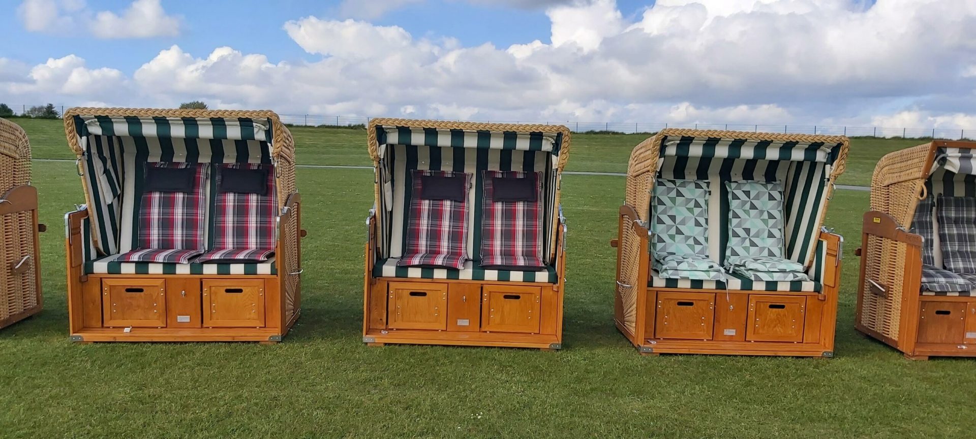 Mit seinem klassischen Look bringt der Strandkorb maritimes Flair auf jede Veranstaltung.