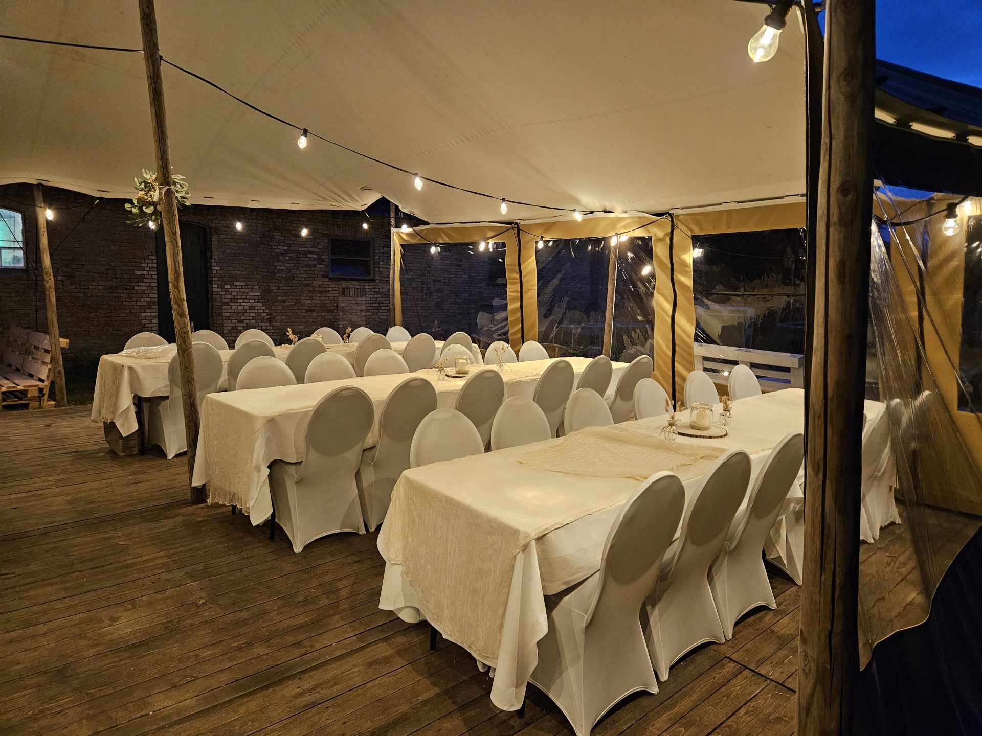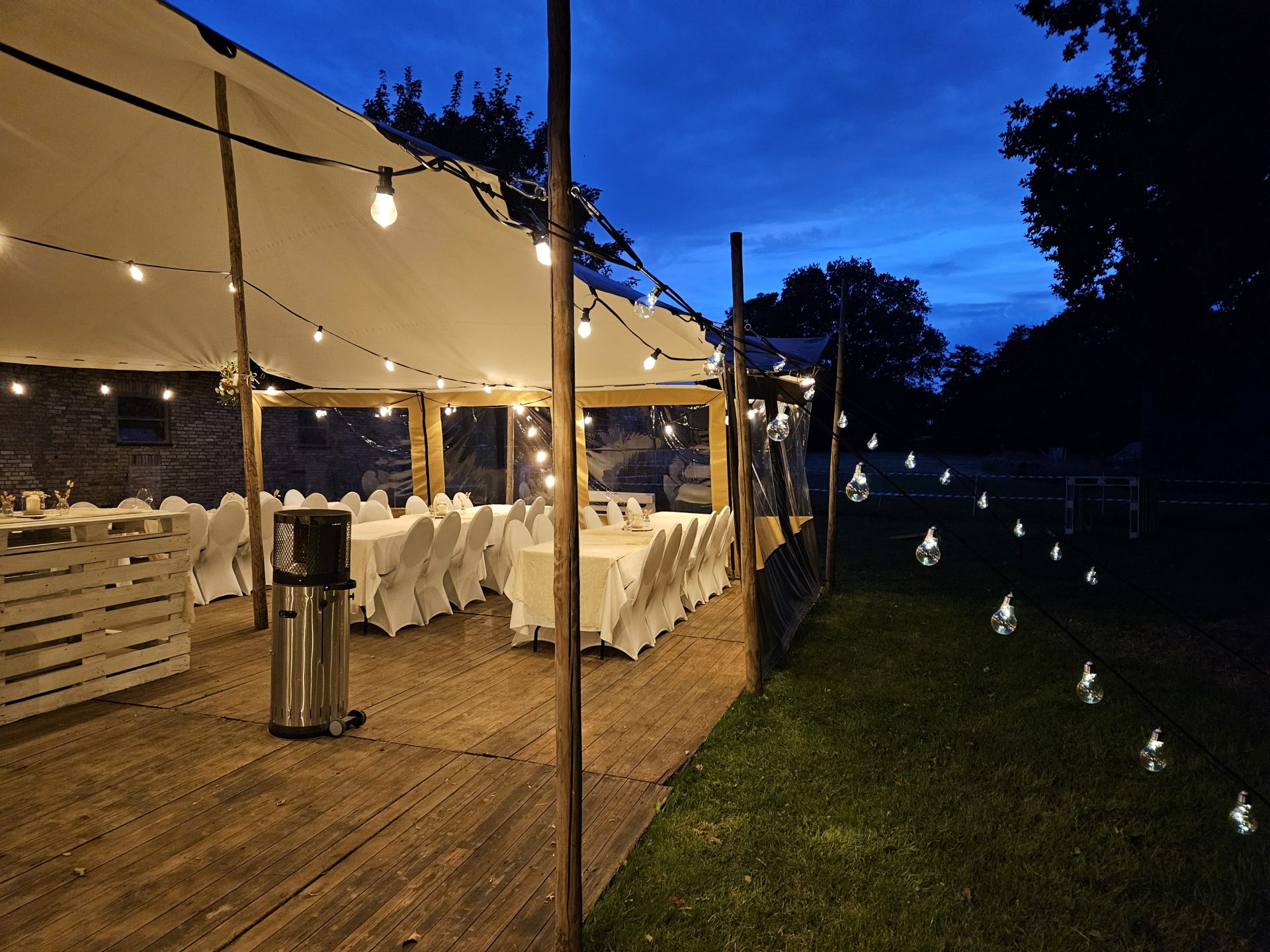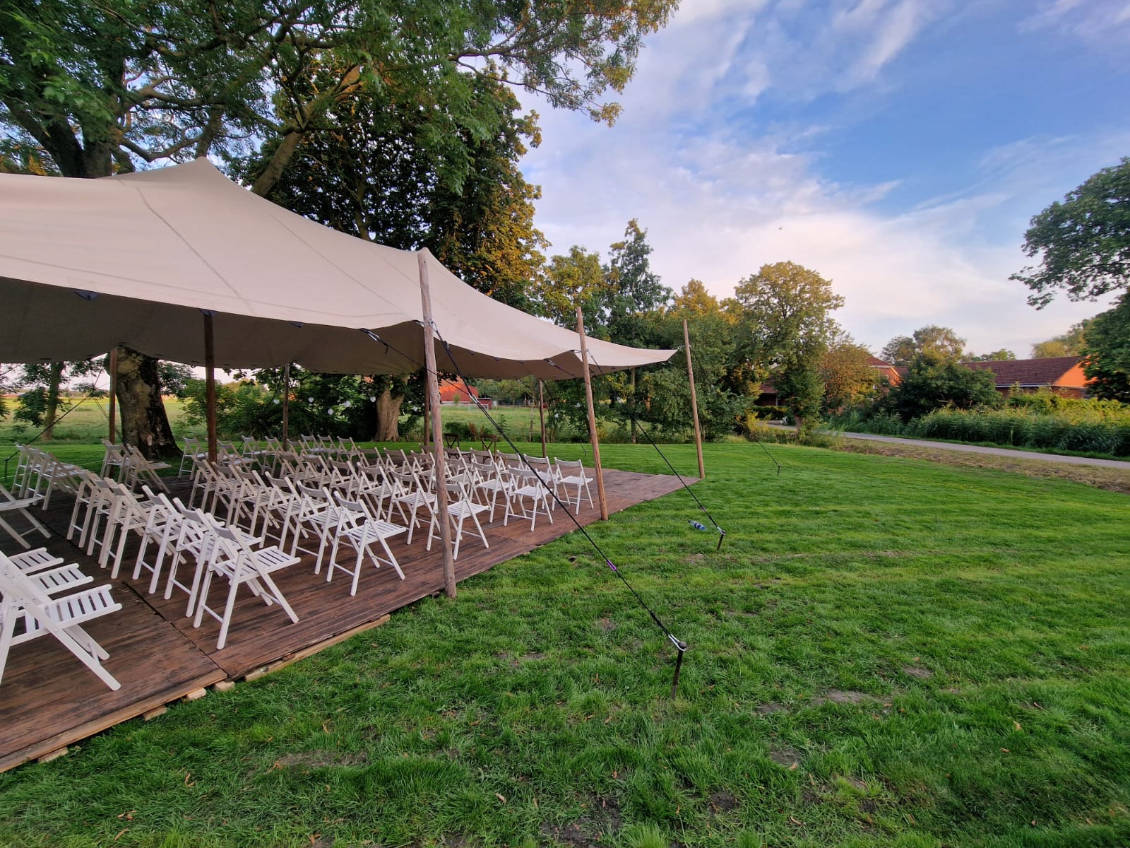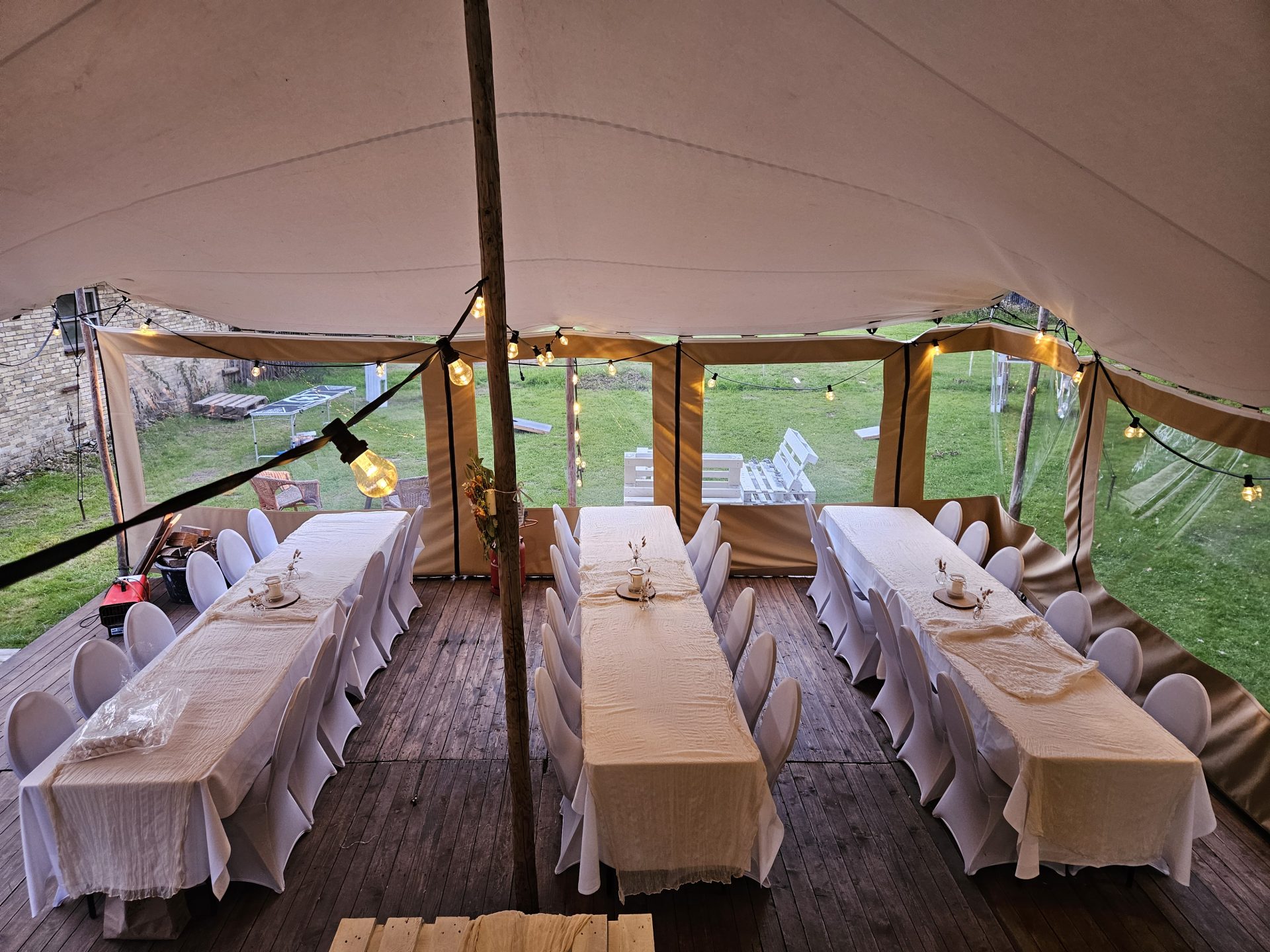 Unsere Böden werden jährlich neu gestrichen und sind dadurch sehr witterungsbeständig. Perfekt, damit Ihre Gäste auch bei schlechtem Wetter trockenen Fußes feiern zu können.