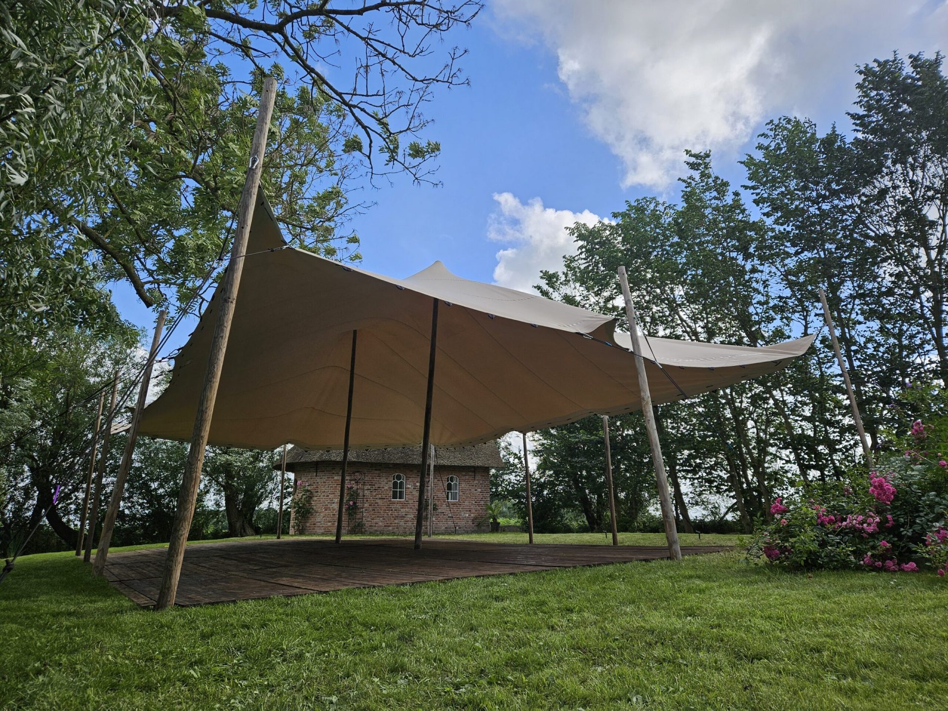 Unser Stretchzelt mit den Maßen 7,5m x 10m bietet die perfekte Kombination aus Stil und Funktionalität, um Ihre Veranstaltung zu einem unvergesslichen Erlebnis zu machen. Mit seiner organischen Form und der flexiblen Einsatzmöglichkeit ist dieses Zelt ideal für Hochzeiten, Firmenfeiern und andere besondere Anlässe.